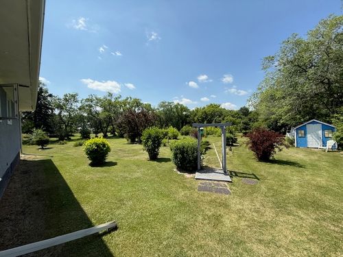 Welcome to your cozy retreat in a peaceful small-town setting — the perfect place to slow down and enjoy life’s simple pleasures. This beautifully updated 968 sq ft bungalow features 3 bedrooms (one currently converted into a convenient main-floor laundry), a fully renovated 4-piece bathroom with tiled tub/shower, and a warm, rustic charm throughout. Step inside to discover brand new windows, shingles, flooring, and fresh paint, stunning pine wood accent walls that bring warmth and character, an updated kitchen with tile backsplash, plenty of cabinetry, and a 2-tier island perfect for prepping or gathering, and a clever front door bench that doubles as dining space or a cozy nook. The partially finished basement offers great potential for additional living space or storage. Outside, the double lot provides ample room for gardening, parking, or future expansion — all beautifully maintained with mature trees, shrubs and green space. Extras include: detached double garage and 2 garden sheds, 100-amp electrical, gas furnace, and electric hot water tank, and a holding tank for solids, with pump to town sewer for liquids. Whether you're a new family looking for your first home or a retiree seeking peace and quiet, this move-in ready property checks all the boxes. Tucked away in a friendly, quiet community, this little gem offers comfort, character, and convenience — all at an affordable price. Pack your bags and settle in — it’s all ready for you. Yr-1959 Taxes-$1872