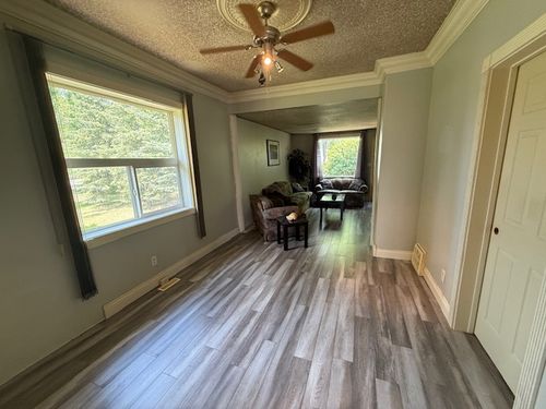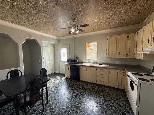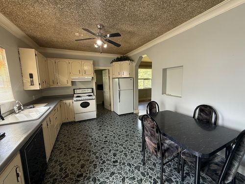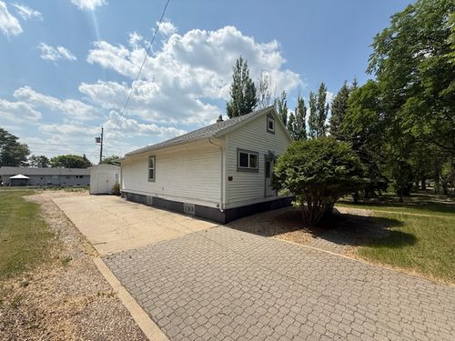 Discover the potential in this 984 sq ft home. Built in 1926, this character-filled home sits on a spacious double lot and offers an opportunity to make it your own. Inside, you'll find 2 main-floor bedrooms, a full 4-piece bathroom, and a dedicated dining room perfect for family gatherings. The large kitchen includes all appliances, with some furniture thoughtfully included to get you started. Newer laminate flooring adds a fresh touch, while recent updates include a gas furnace and hot water tank for peace of mind. An unfinished loft area presents exciting possibilities. The full basement is partially finished, featuring a 3-piece bathroom and space for a bedroom, rec room, and storage room, ready for your customization. Outside you will enjoy a generous back deck, ideal for entertaining, and a handy storage shed for all your tools and extras. The concrete driveway offers ample parking. Whether you're an investor, first-time buyer, or renovation enthusiast, this is your chance to own a piece of history with potential. Yr-1926 Taxes-$2006